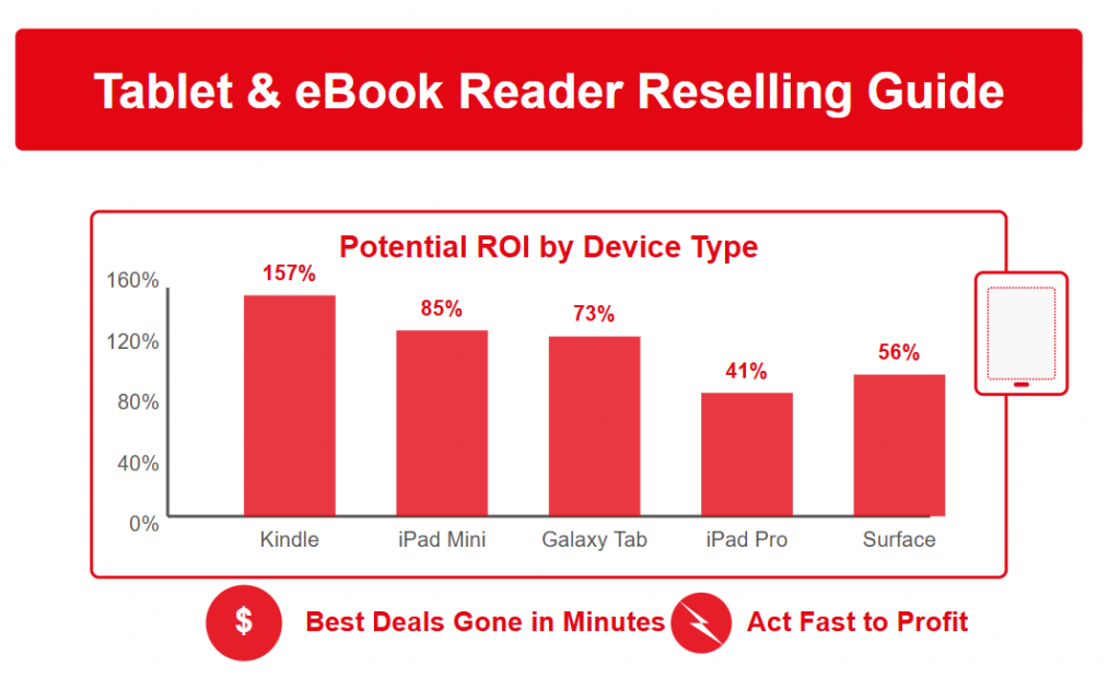 These quick-flipping tablets and eBook readers represent some of the best opportunities for resellers looking for fast profits. Successful resellers often act within seconds to secure these deals before the competition.