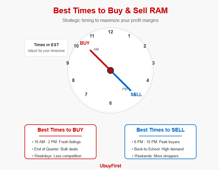 6 PM – 10 PM (EST) | Sell RAM | Peak buyer activity |
